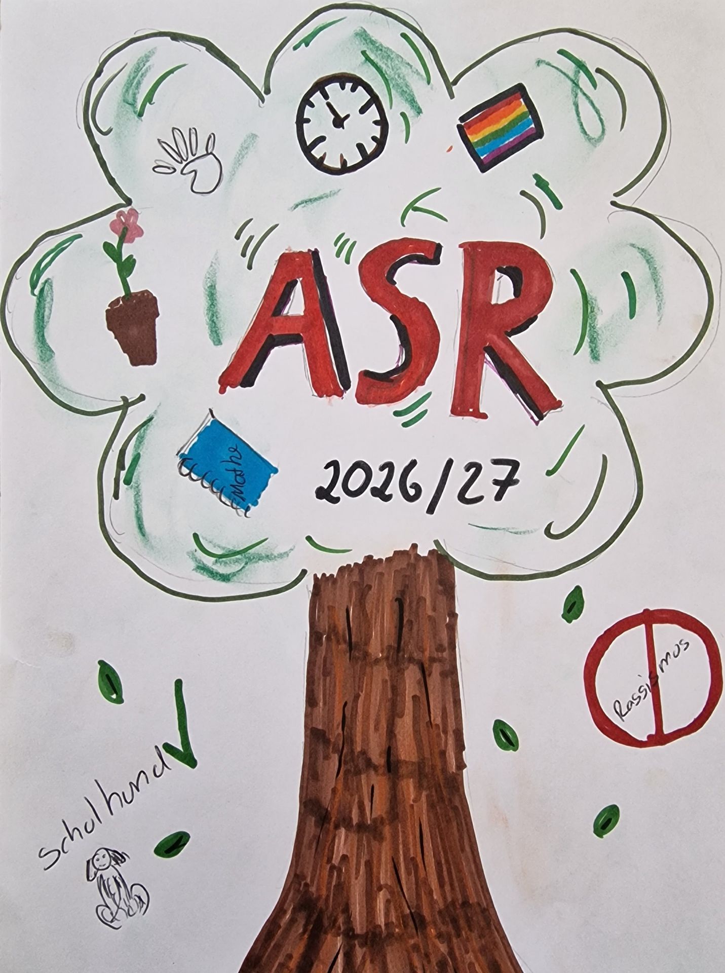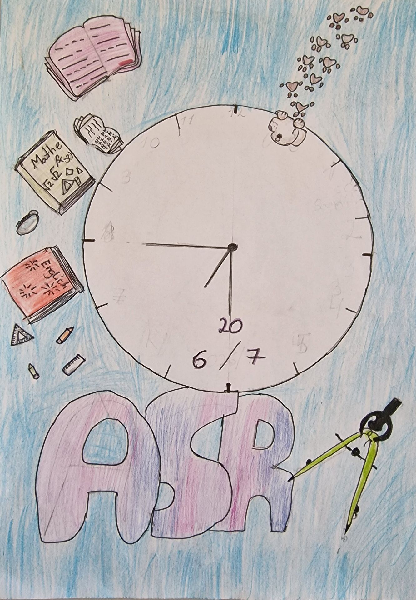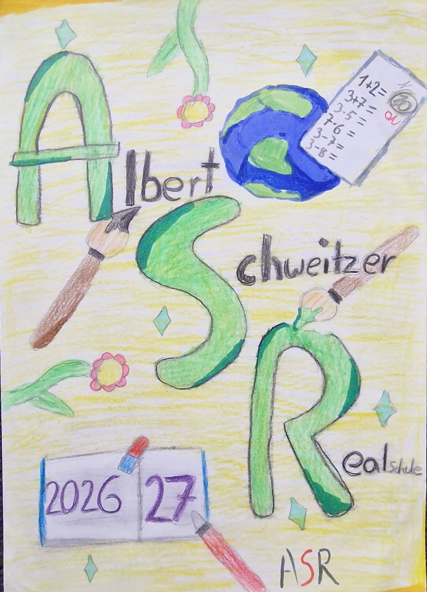 Für das kommende Schuljahr 2026/27 haben einige Schülerinnen und Schüler unserer Schule kreative Entwürfe für das Cover des neuen Schulplaners gestaltet. Aus zahlreichen Ideen hat ein Gremium die besten, originellsten und passendsten Vorschläge ausgewählt. Eine Auswahl dieser Entwürfe können Sie hier sehen. Besonders überzeugen konnte Eliza H. aus der Klasse 5a: Ihr Design wurde als Gewinnerentwurf ausgewählt und schmückt den Schulplaner für das Schuljahr 2026/27, der derzeit gedruckt wird. Wie in den vergangenen Jahren erhalten alle Schülerinnen und Schüler zu Beginn des neuen Schuljahres wieder den ASR-Schulplaner.